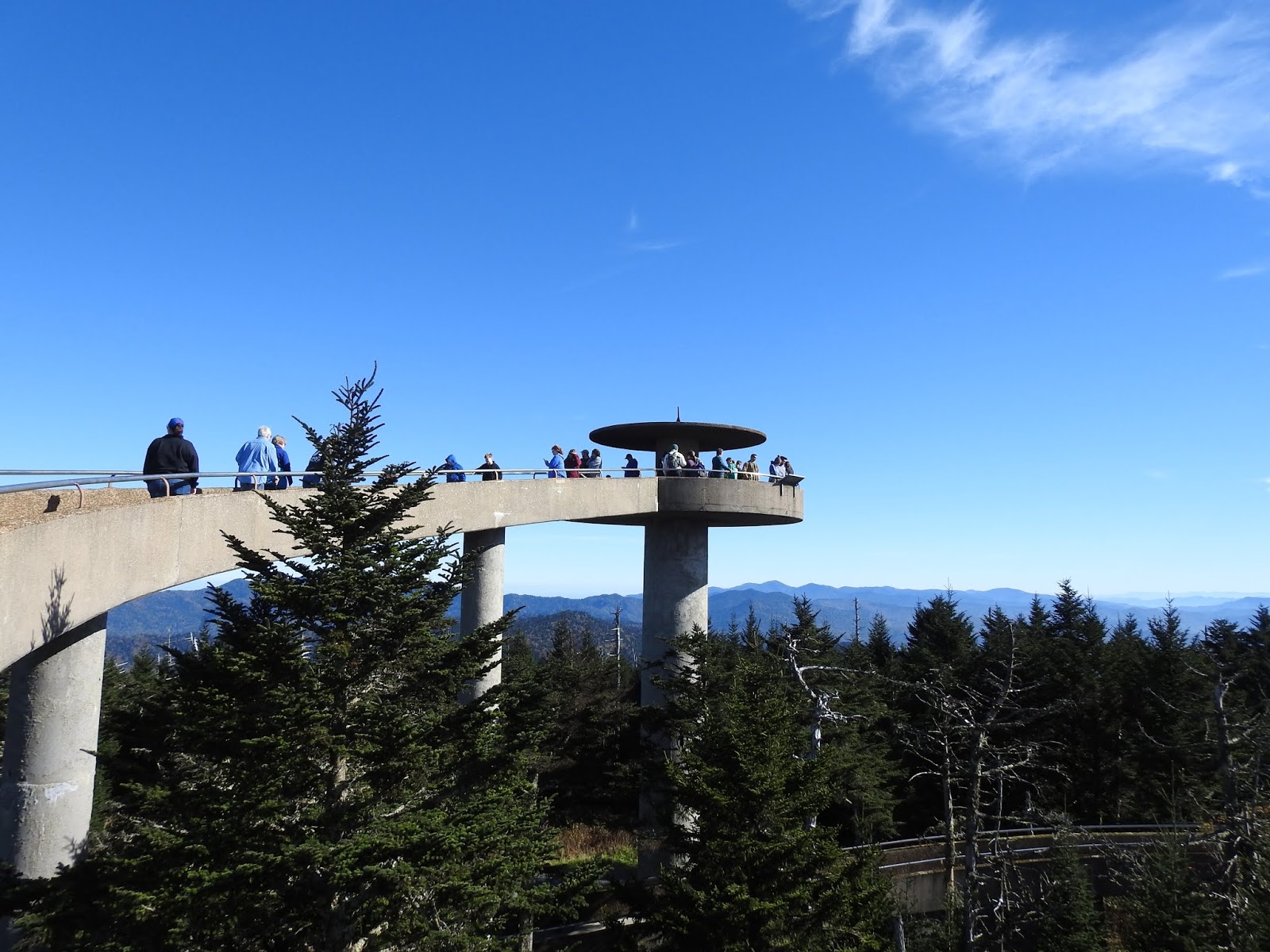 Clingman's Dome is the third highest mountain east of the Mississippi River, at 6,643 feet it is only 41 feet lower than the tallest, nearby Mount Mitchell in western North Carolina, which by the way we just drove past yesterday when finishing The Blue Ridge Parkway. It is therefore the highest mountain in the state of Tennessee and Great Smoky Mountains National Park. The Appalachian Trail crosses over Clingman's Dome and it marks the highest point on the entire trail that travels between Georgia and Maine.