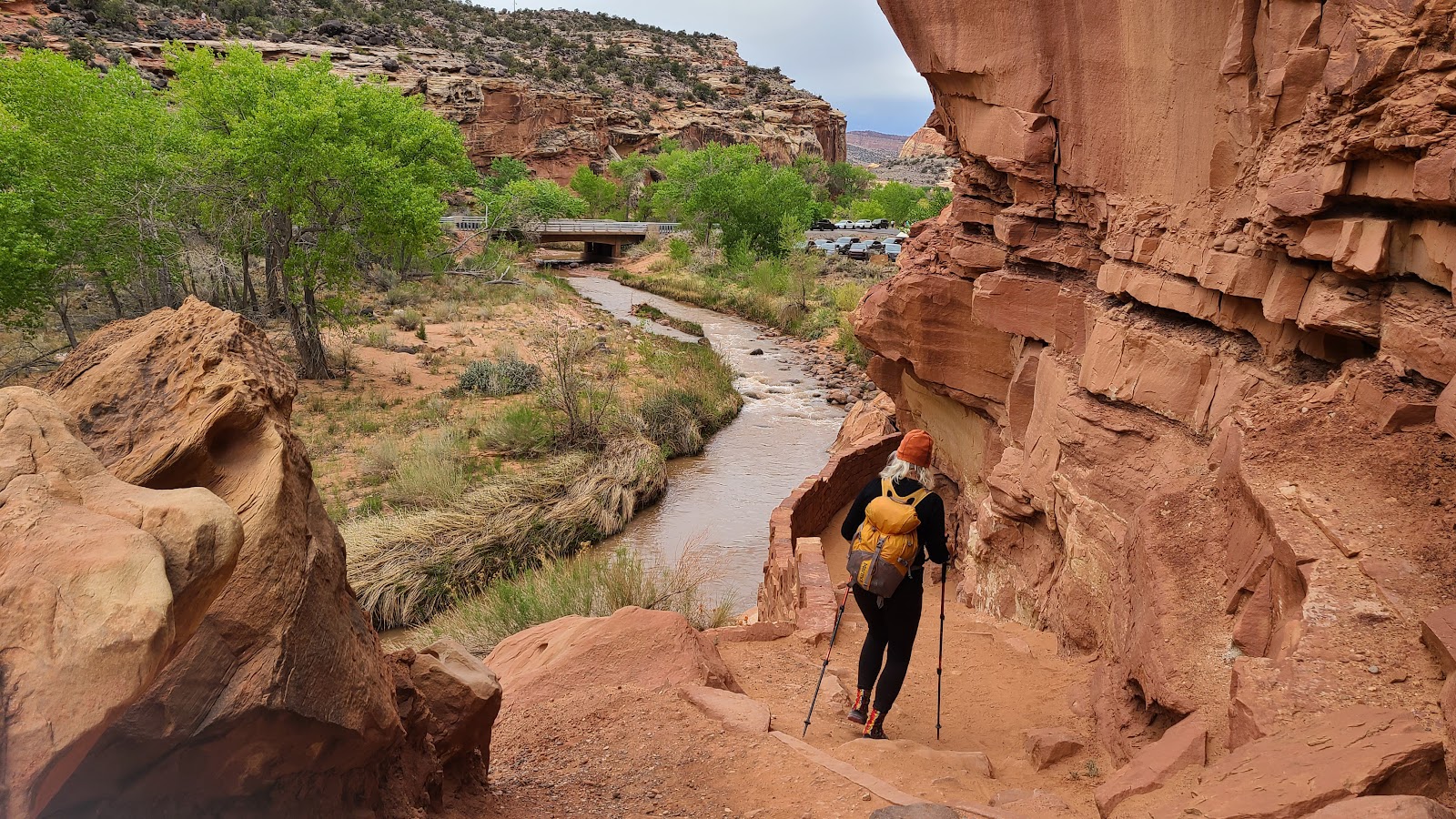 This trail is located outside of the Historic Fruita District of the park where the campgound and Visitor Center are located. It's trailhead is just a few miles east down UT-24.